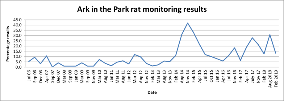 Rat density before predator control started: approximately 70% presence in monitoring tunnels